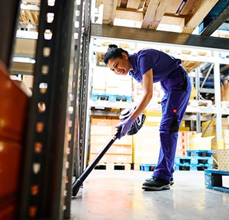 Reinigung von Produktionshallen, Lagerräumen und Maschinen.